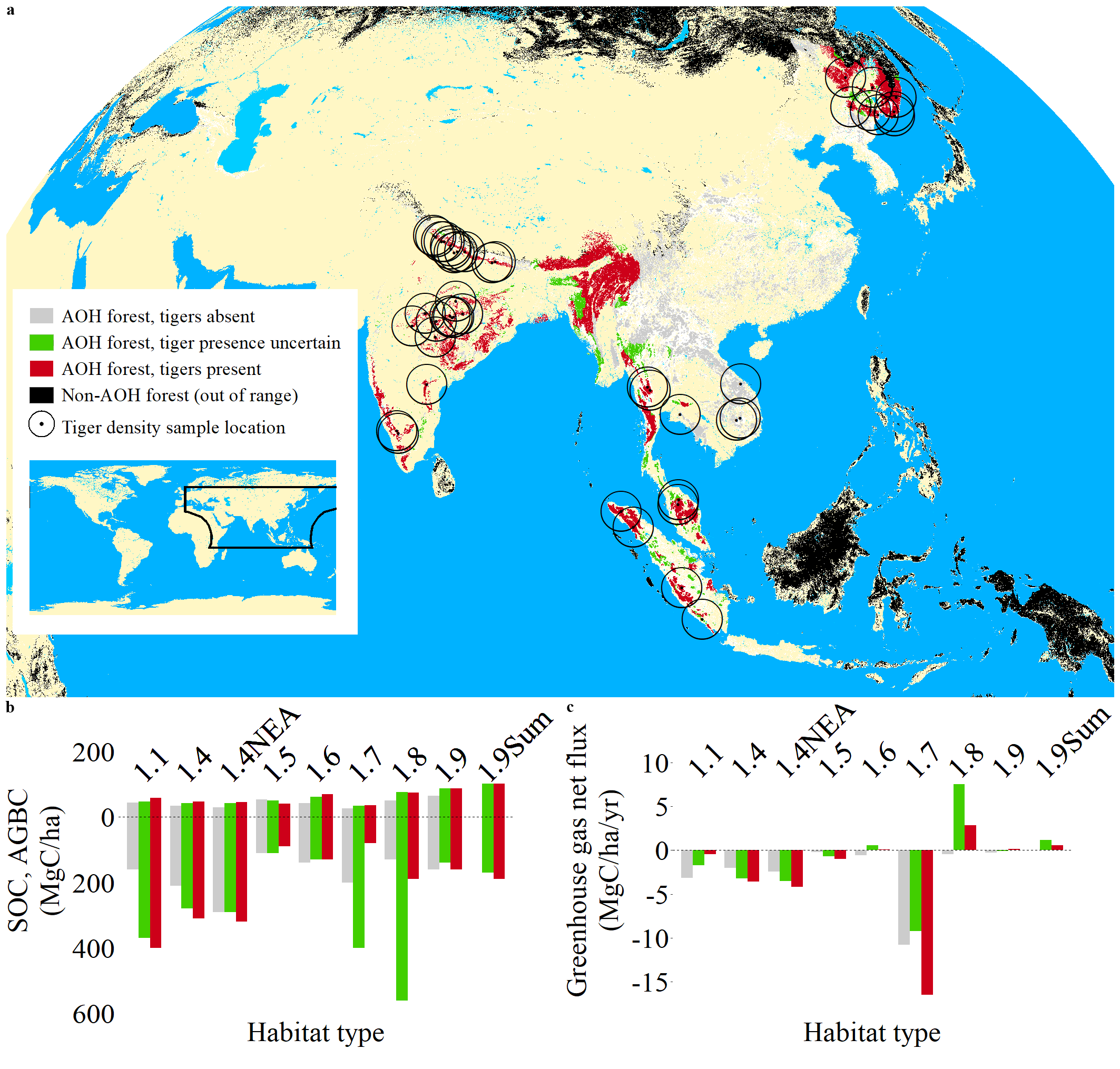 为探究顶级捕食者在森林碳循环中的作用,基于全球虎及其栖息地森林分布数据的分析...