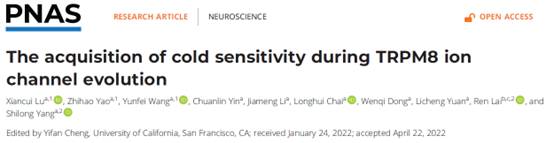 5月21日,美国科学院院刊《Proceedings of the National Academy of Sciences of the United States of America》发表了我院yl7703永利集团杨仕隆教授研究团队的题为“The Acquisition of Cold Sensitivity during TRPM8 Ion Channel Evolution”的研究论文(图1),该研究揭示了动物登陆演化与TRPM8冷激活机理。